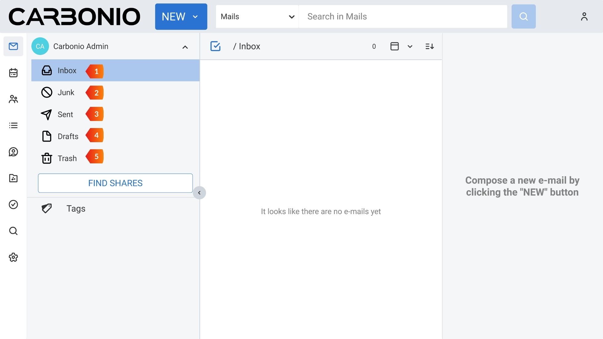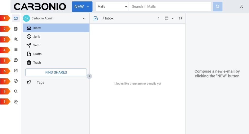 On this page, you can compose new emails by clicking on NEW E-MAIL. Now, let’s see what happens when you click on the NEW E-MAIL.